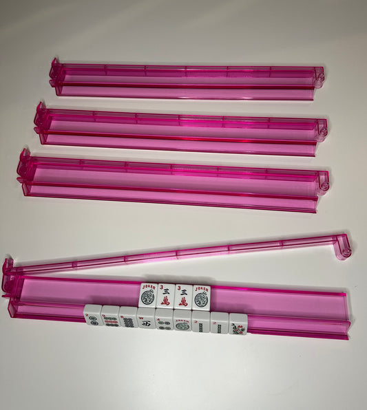 Our custom racks, have a detachable, magnetized pushers that function exactly the same as your full size pusher/ racks. And yes...they all fit into our clear Mahj to go… bag